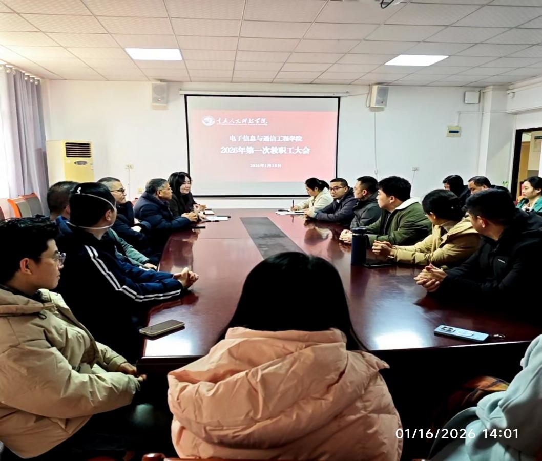 为深入贯彻落实上级及学校关于师德师风建设和意识形态工作的各项要求,切实强化教职工政治理论素养,筑牢育人思想根基,1月16日,电子信息与通信工程学院在5406会议室召开2026 年第一次教职工大会暨政治理论学习会,学院全体教职工参加会议。