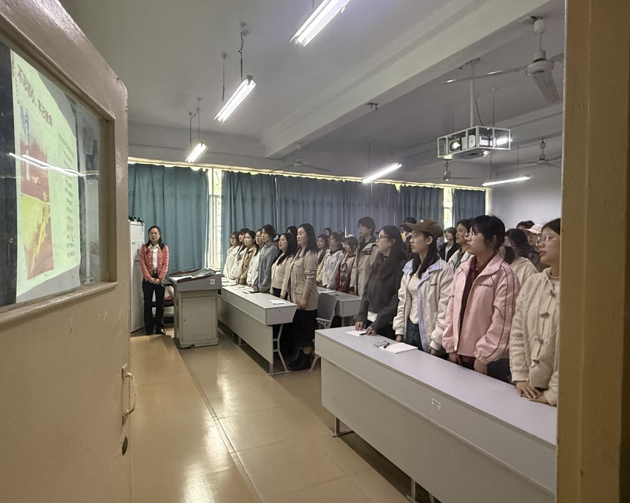 典礼在雄壮的国歌声中拉开帷幕。全体师生肃立齐唱,铿锵有力的歌声回荡在会场,展现了师生们饱满的政治热情和昂扬的精神风貌。
